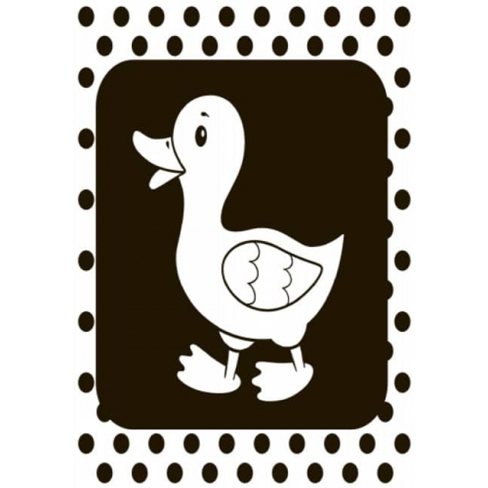 Книжка-розкладайка для немовлят із чорно-білими картинками. Вона спеціально створена для розвитку і координації зору і сприйняття у малюків за популярною методикою Сесіль Лупан і Сари Брюер. Книга середнього розміру зі щільного картону. Вона ідеально підійде для розглядання картинок малюком у ліжечку. З одного боку розкладачки розташовуються чорно-білі картинки, з іншого боку - додається ще один колір. Художник П. С. Кривцова.
