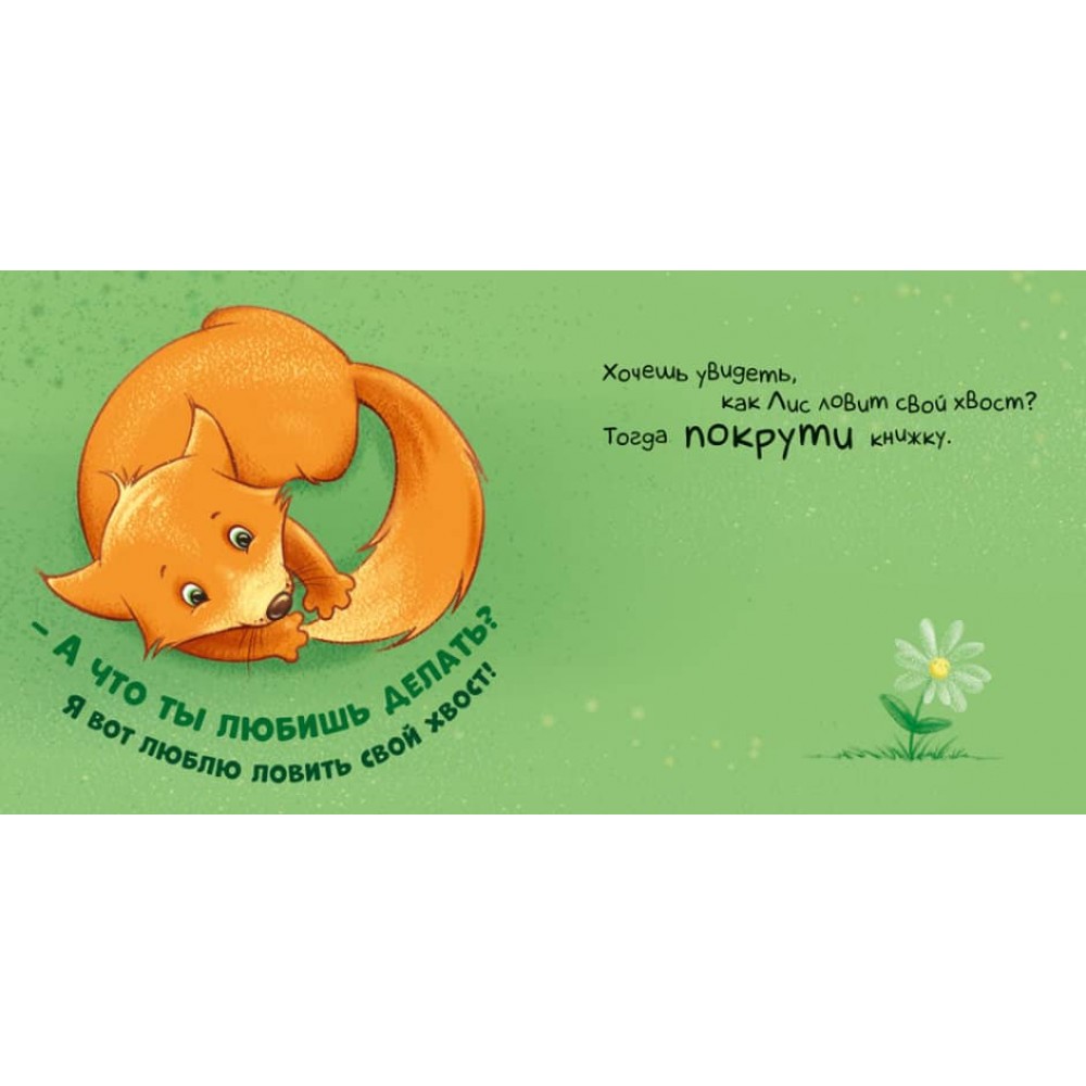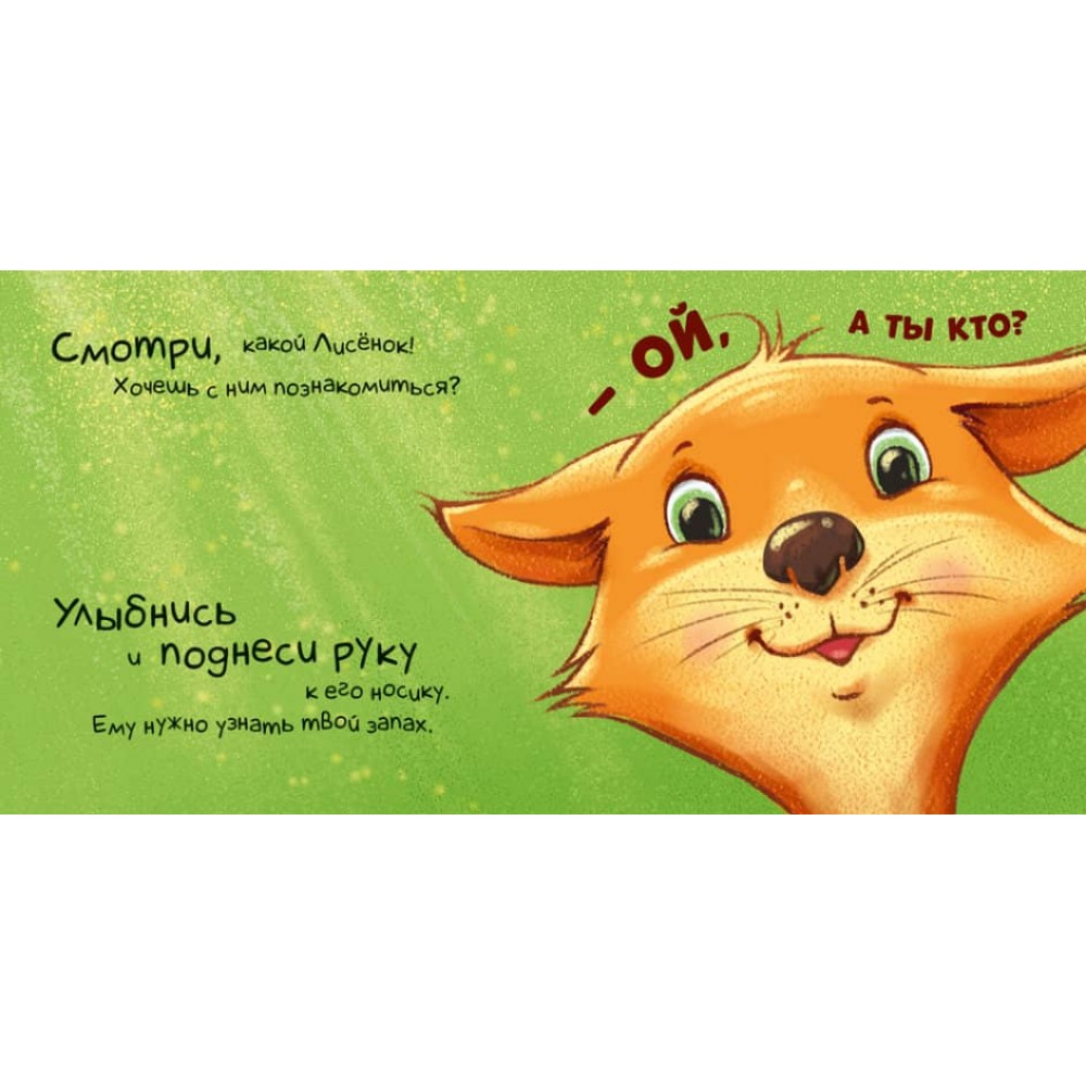З цiєю книжкою можна грати по-рiзному: крутити, трясти, качати, навiть дути на неї i гладити. Дитина буде брати активну участь в iсторi та взаємодiяти з головним героєм книжки на ко жному розворотi. Лисеня просить подути й остудити молочко, Їжачок – струсити грушi з дерева, Ведмедик – покачати лiжечко, щоб вiн швидше заснув, а Мишеня по трiбно сховати вiд кiшки. Нехай знайомство з контактною книжкою буде приємним!
